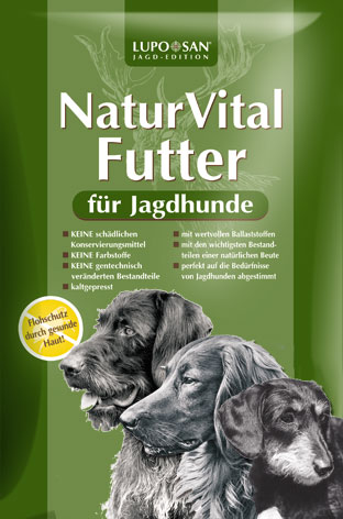 Fütterempfehlung: 1,2 % vom Körpergewicht, d.h. ein 20 kg schwerer Hund erhält ca. 240 g NaturVital Futter