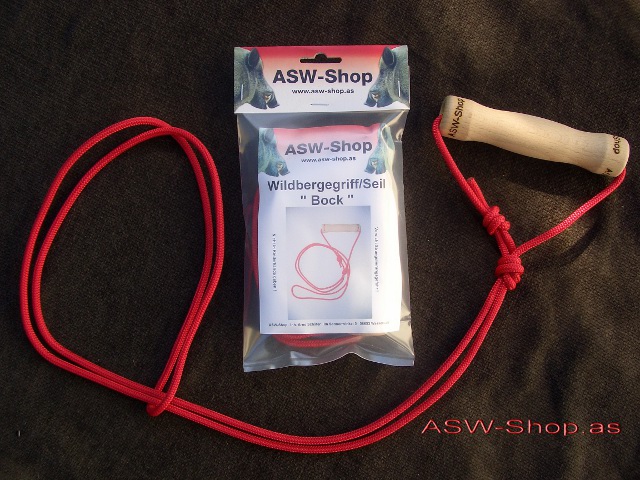 Dieser Wildbergegriff ist mit einem Buchenholzgriff ausgestattet der ergonomisch besonders gut in der Hand liegt, und so selbst lange Zugbelastungen ermüdungsfrei gewährleistet. Der Griff ist nicht lackiert sondern gewachst, er behält so seine natürliche Griffigkeit auch bei nasser Handfläche. Der Griff ist ca. 30 mm im Durchmesser und hat eine innenliegende Schnurdurchführung, das Seil hat eine Zugfestigkeit von über 500 kg bei 5 mm Durchmesser. Mit diesem Wildbergegriff wird es erheblich vereinfacht selbst schweres Wild zu bergen, und über größere Entfernungen zu ziehen. Die Zugfestigkeit des Seiles beträgt über 500 kg.