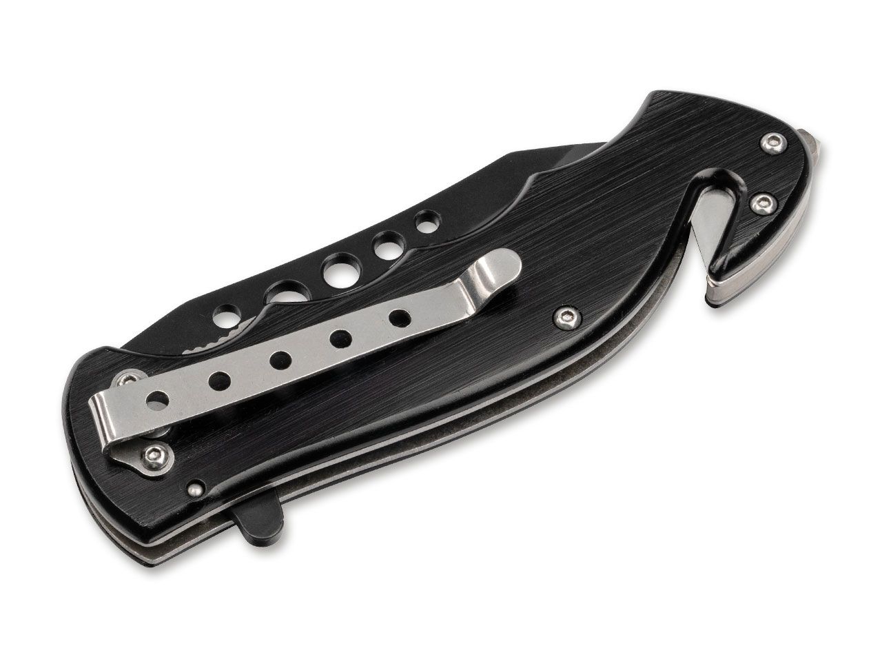 Das Magnum Special Forces ist ein funktionales Rettungsmesser, das den weltbekannten Elite-Einheiten der amerikanischen Streitkräfte gewidmet ist. Der leichtgewichtige Griff aus schwarz beschichtetem Aluminium trägt ein Emblem mit dem Wappen der Special Forces. Die rostfreie Klinge aus 440A öffnet federunterstützt per Flipper und wird von einem stabilen Linerlock zuverlässig arretiert. Die Bohrungen verleihen der Klinge eine eigene Note und reduzieren zudem das Gewicht. Am Griffende befinden sich ein Glasbrecher und ein Gurtschneider, die das Messer für jede Notfallausrüstung prädestinieren. Mit praktischem Deep-Carry-Clip (Tip-down).