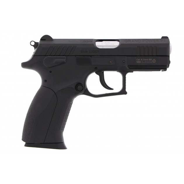 Grandpower P1MK7 CO² Luftpistole BB Die Luftpistole P1Mk.7 BB im Kal. 4,5mm Stahl BB ist ein echtes Liebhaberstück und vor allem für Sammler interessant. Auf dem Schlitten der CO² Waffe ist die Seriennummer eingraviert. Die Pistole wird durch eine ins Magazin eingesetzte CO² -Kapsel angetrieben. Die Pistole zeichnet sich durch eine sichere Handlage, perfektes Finish und eine lange Lebensdauer aus. Technische Daten zu Grandpower P1MK7 CO2 Luftpistole: Kaliber: 4,5 mm (.177) Munition: Stahl BBs im Kaliber 4,5 mm System: 12g CO² Kapsel Abzug: Single-/Double-Action Magazin: 18 Schuss Länge: ca. 210 mm Gewicht: ca. 840 g Blow Back Material: Nylonverstärkter Kunststoff / Metallschlitten Ausführung: schwarz