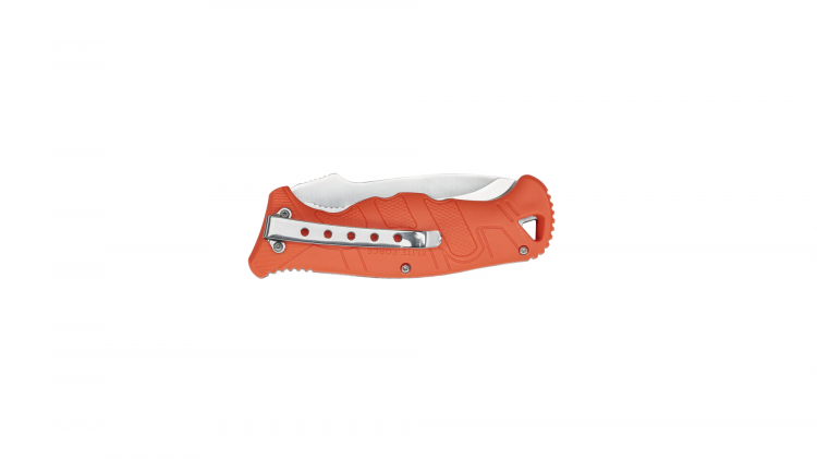 Die Outdoor- und Jagdversion des EF141 bietet mit den gerundeten Griffschalen aus Polymer die gleiche ausgezeichnete Ergonomie wie die beliebte schwarze Tactical-Variante. Jedoch gewährleisten die orangefarbenen Griffschalen und die Satinierung der Klinge, dass das EF141 im Gras oder auf dem Waldboden stets leicht wiedergefunden wird. Im Unterschied zur Tactical-Ausführung ist die bauchige Klinge aus 440A mit einem Nagelhau zum zweihändigen Öffnen ausgestattet. Die Verriegelung erfolgt per Linerlock. Der Edelstahlclip ermöglicht das komfortable Tragen in der Hosentasche. Ein echter Allrounder nicht nur für die Jagd.