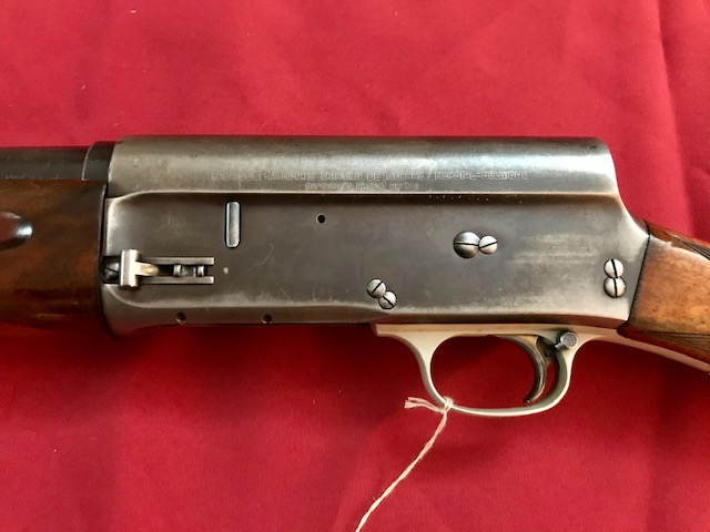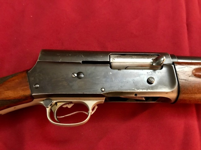 Original FN (Herstal) Selbstladefline Mod. Auto 5 im Kal. 16/70 Die techn. Daten sind wie folgt. Art.Nr. 255819 Kal. 16/70 Gesamtgewicht: nur ca. 2920 Gramm Gesamtlänge: ca. 119cm Lauflänge: ca. 70cm Schaftlänge: ca. 36,5cm (von Mitte Abzug bis Mitte Schaftkappe) Vollchoke Bohrung Ladekapazität 2+1 Der Zustand der Waffe ist gebraucht aber in einem guten Gebrauchsfähigen Zustand. Lauf ist blank, brünierung ohne Narben aber an manchen Stellen abrieb. Schaft mit Gebrauchsspuren.