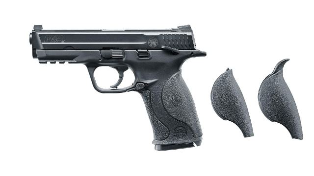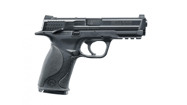Der US-Hersteller Smith & Wesson präsentierte 2005 die Pistole M&P40 aus seiner Military & Police-Baureihe. Das Original im Kaliber .40 S&W gibt es jetzt bei Umarex als frei verkäufliche, lizensierte CO2-Pistole. Das Magazin fasst 19 BB's in 4,5 mm. Der brünierte Metallschlitten, der einen Blowback-Effekt erzeugt, sitzt auf einem Polymer-Griffstück. Antrieb : CO2 Magazinkapazität: 15 Schuss Sicherung: Schlagbolzensicherung Länge : 192 mm Lauflänge: 106 mm Gewicht : 725 g Geschossgeschwindigkeit: 95 m/s Abzug : Single-Action Besonderheit(en) : Blow Back Schuss pro Kartusche: ca. 60 Energie : 1,4 Joule