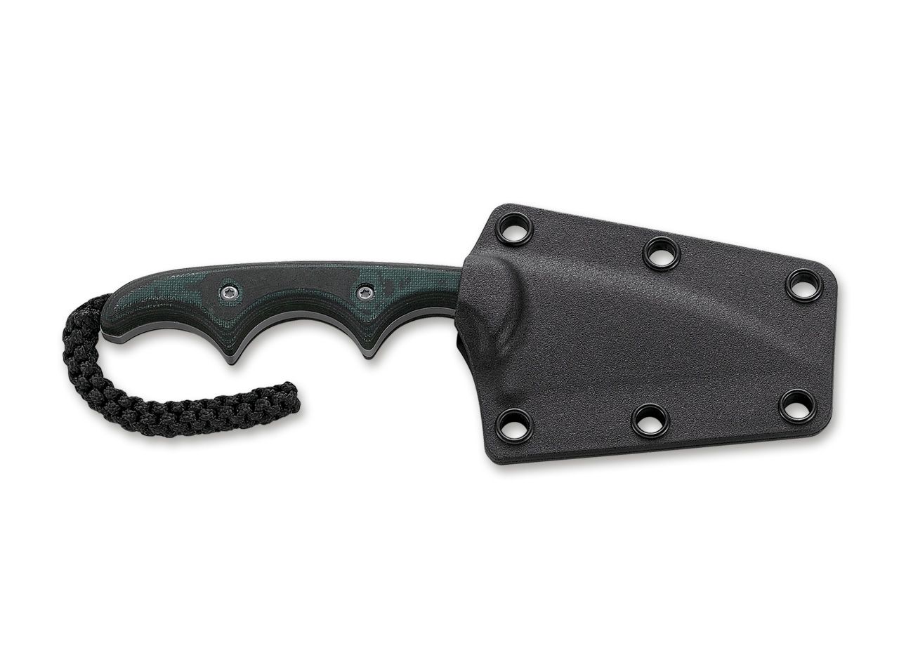 Die CRKT Minimalist Serie von Alan Folts begeistert seit Jahren viele Fans. Das Einsatzspektrum des beliebten Messers ist beträchtlich, besonders als Neck Knife erweisen sich die verschiedenen Modelle als echte Allrounder für alle kleineren Schneidarbeiten des Alltages. Die 5Cr15MoV Wharncliffe-Klinge ist sehr fein ausgeschliffen. Der kleine Dreifingergriff liegt trotz der minimalistischen Abmessungen erstaunlich gut in der Hand. Durch den Einsatz von Micarta und einem handgeknüpften Lanyard fühlt sich der Griff allerdings deutlich größer an. Mit Zytel-Scheide.