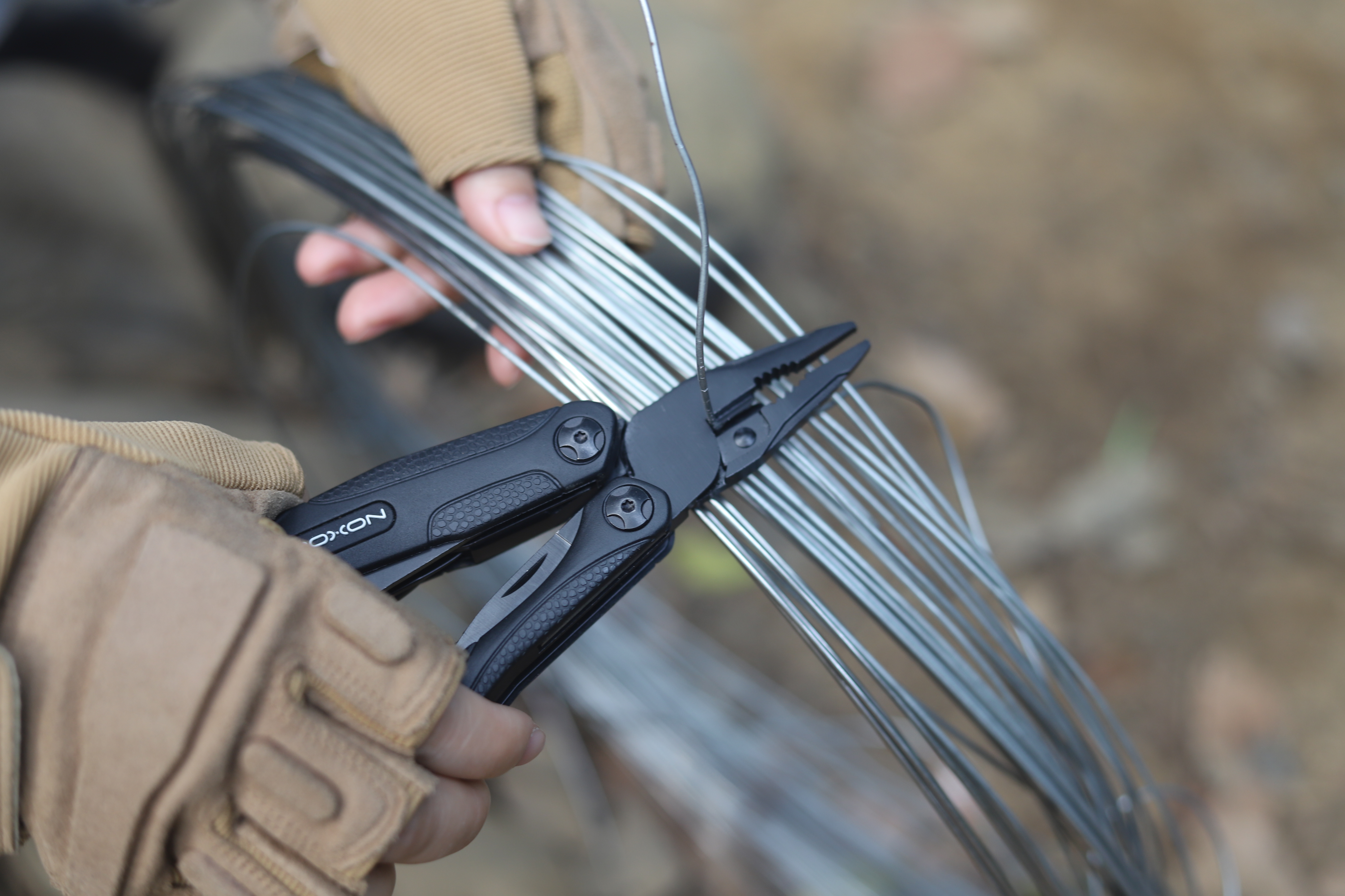 Dieses Multitool verfügt über 16 Funktionen:Spitzzange, Zange, Kabelschneider, Flaschenöffner, Korkenzieher,Glasbrecher für Notfälle, Säge, Metallfeile, Schraubenzieher,Seilschneider, Gurtschneider, Dosenöffner, Messer,Kreuzschlitz-Schraubenzieher, große Schere, Lineal.