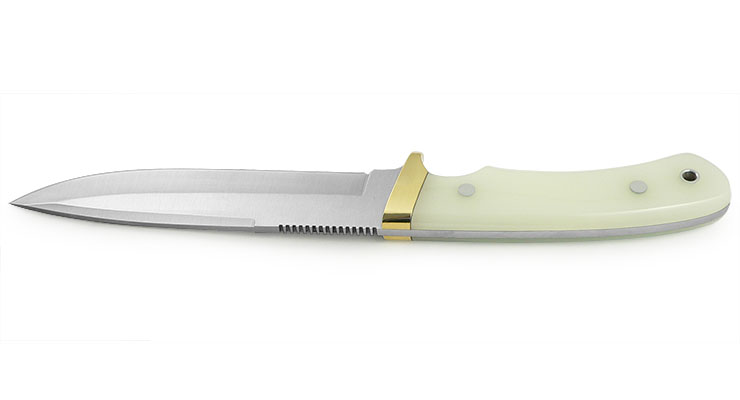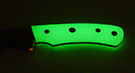 PUMA IP Uhu (Inklusive Lederscheide) Artikelnummer: 846065 Das Griffmaterial besteht aus Acryl und ist frei von Radioaktivität, Phosphor und anderen Giftstoffen. Die Lichtenergie wird durch Tageslicht sowie künstliches Licht aufgenommen und in der Dämmerung und bei absoluter Dunkelheit in Form von Licht wieder abgegeben. Klingenlänge: 145 mm Klingenstärke: 3,5 mm Gesamtlänge: 265 mm Messergewicht: 227 g Beschalung: Acryl - fluoreszierend Knebel: Messing Stahl / Härte: 440C / 57-59 HRC Scheide: Steck-Anhänge-Lederscheide mit Druckknopfverschluss
