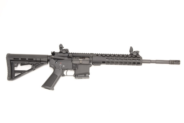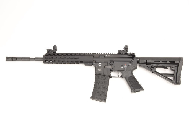 Kal. .223Rem. AR15 Modell M4F, Selbstladebüchse nach Mil-Spec, Gasdrucklader. Alle 'F' Modelle sind mit freischwingenden Läufen sowie mit Spezial Schaft und Griff für erhöhte Präzision ausgestattet. Zudem sind die Waffen mit modernen fein justierbaren Klappvisierungen ausgestattet. Daten: Gesamtlänge 88cm, mit eingeschobenenem Schaft 78cm. Gewicht ca. 3,5 Kg. Gehäuse: Nach Mil-Spec Gesenk geschmiedetes Gehäuseunter- und -oberteil (Lower/Upper) aus 7075 T6 Aluminium gefräst und harteloxiert. Lauf: Abgestufter Lauf mit 1/9 Drall, matt schwarz brüniert. Lauflänge 37 cm (14,5'). Ausstattung: Mündungsfeuerdämpfer, slim line Stahl- Gasblock, Keymod-Handschutz Two-Stage Trigger Lieferumfang: 2- oder 10- Schussmagazin,Koffer, Reinigungsset Hinweis: In Deutschland für Sportschützen nicht erwerbbar, nur auf Jagdschein!