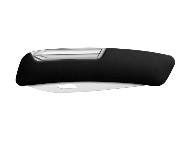 SWIZA D02 schwarz - das neue Schweizer Taschenmesser. Hergestellt in der Schweiz auf modernsten Produktionsanlagen, verfügt das Messer über eine tolle Funktionalität: Höchste Sicherheit, da die 75mm lange Klinge aus Edelstahl 440 (gehärtet auf 57 HRC) arretiert und sich durch Druck auf das Schweizer Kreuz - Markenzeichen von Swiza - wieder einklappen lässt. Die leichte Krümmung des Messers ermöglicht ein müheloses Aufklappen aller Werkzeuge, die Anti-Rutsch-Oberfläche erleichtert eine intuitive Handhabung. Das D02 besitzt außerdem eine Stech- und Bohrahle, eine Pinzette mit abgeschrägter Spitze und einen Kreuzschlitzschraubendreher. D02 - 6 Funktionen: Klinge 75mm, Klinge mit Sicherheitsblockierung, Stech- und Bohrahle, Nähahle, Kreuzschlitzschraubendreher Nr. 1-3, Pinzette