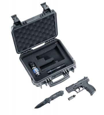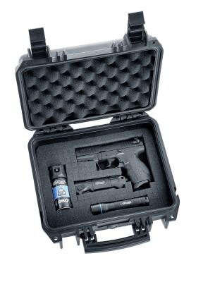 Technische Daten Kaliber :9 mm P.A.K. Magazinkapazität :7 Schuss Länge : 154 mm Gewicht : 480 g Beschreibung 'Ready 2 defend', bereit zum Abwehren, so heißt dieses Umarex-Kit rund um die Walther P22Q im Kaliber 9 mm P.A.K.. Der stabile Kunststoffkoffer enthält eine sorgfältig zusammengestellte Auswahl hochwertiger Walther-Produkte zur Selbstverteidigung. Neben der handlichen und zuverlässigen Schreckschusspistole gehört eine Dose Walther Pro 360°-Pfefferspray dazu, dessen innovative Ventiltechnik das Sprühen aus jedem Winkel erlaubt. Das Walther-Messer Blacktac und die Walther Pro LED-Taschenlampe PL50, ebenfalls im R2D-Kit, leisten auch in anderen Notfällen gute Dienste.