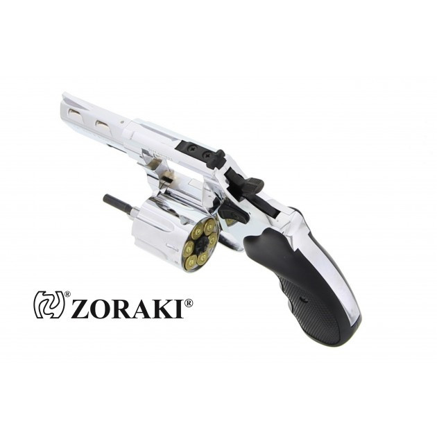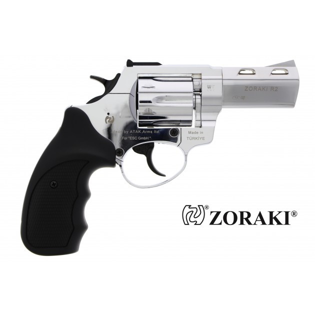 Zoraki R2 chrom 3'' Der Zoraki R2 Signalrevolver ergänzt ab jetzt den erfolgreichen Zoraki R1 Revolver. Er ist, wie auch der R1, ein hochwertig verarbeiteter Gas-Signalrevolver aus dem Hause Atak Arms mit integrierter Fallsicherung, Griffstück aus Metall und Griffschalen aus schlagfestem Kunststoff. Durch seinen Single-/Double-Action Abzug eignet sie der Revolver auch perfekt zum Selbstschutz. Der Zoraki R2 Gasrevolver liegt gut in der Hand. Die Stahltrommel bietet Platz für 6 Schuss. Gewicht ca. 760g Länge ca. 19,5 cm Kaliber 9 mm R. Schuss 6 Munition Gas / Knall Abzug SA/DA